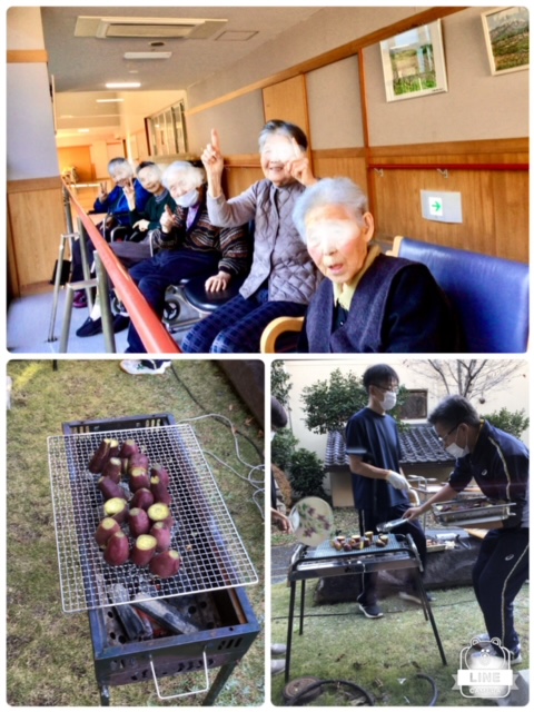 毎年恒例の焼き芋作り。少し蒸してから、炭火でこんがり焼いたさつま芋を、みんなで美味しくいただきました。