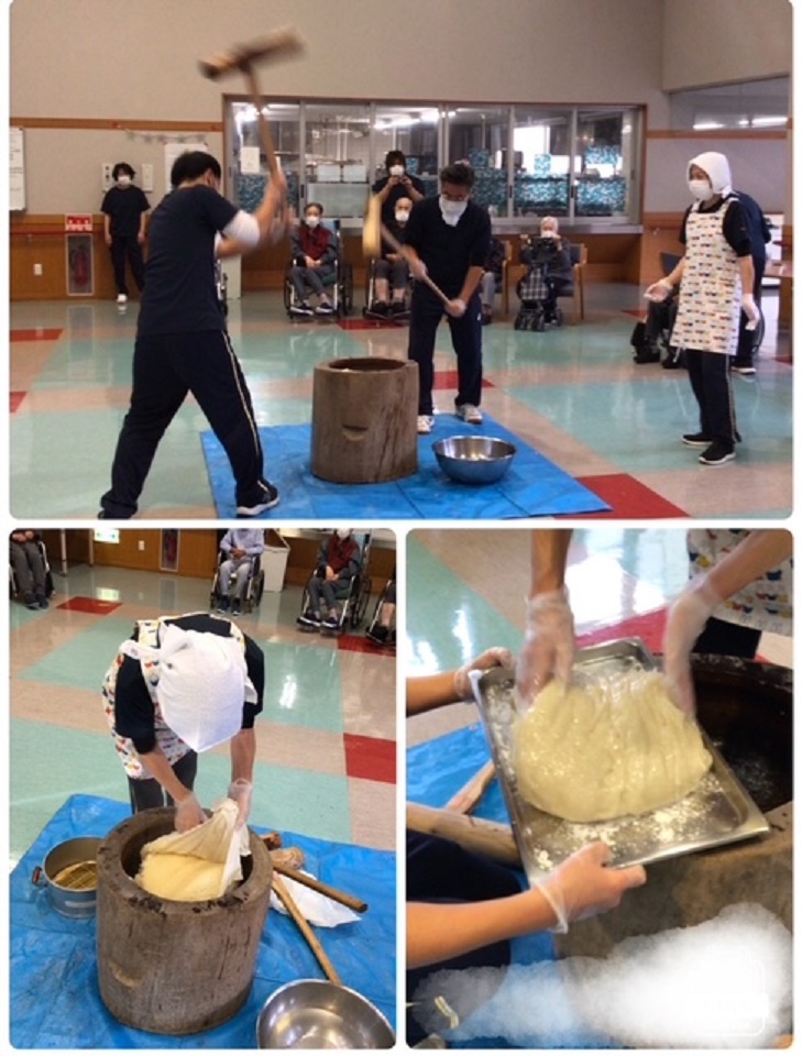 毎年恒例の『お餅つき』を行いました。職員によりもち米を潰し、合いの手が入りながら、杵で「ぺったんぺったん」つくことが出来ました。