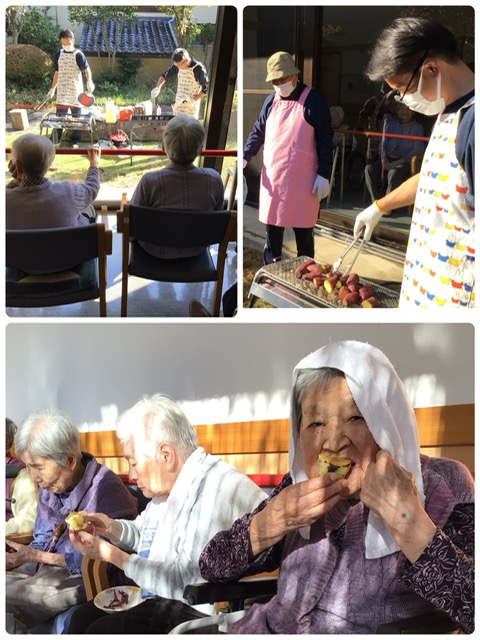 秋らしくなり、毎年恒例の焼き芋を炭で焼いて、おやつに頂きました。甘くてしっとりの「紅あずま」美味しかったです。
